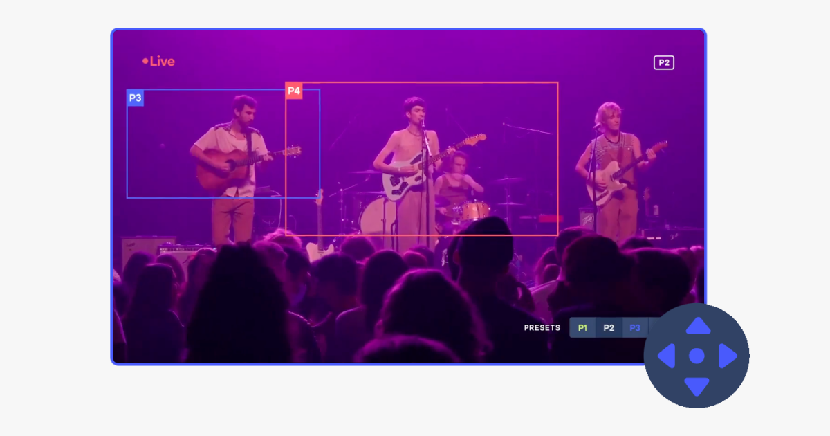 Pan-tilt-zoom (PTZ) cameras bring action into the stream, moving side-to-side, up-and-down, and zooming in to capture the details of your subjects. PTZ cameras contain robotic components and can be remotely controlled by a professional videographer.